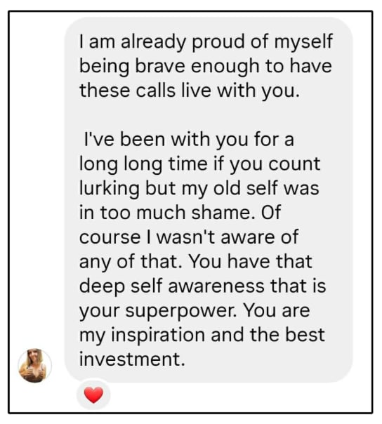 Ask anything—on the calls, in between, ask for feedback. You don’t have to figure it out alone. And you’ll build connections with incredible women who help rapidly open your mind, expand your heart and uplevel your business. All through the power of love and connection. YAY!